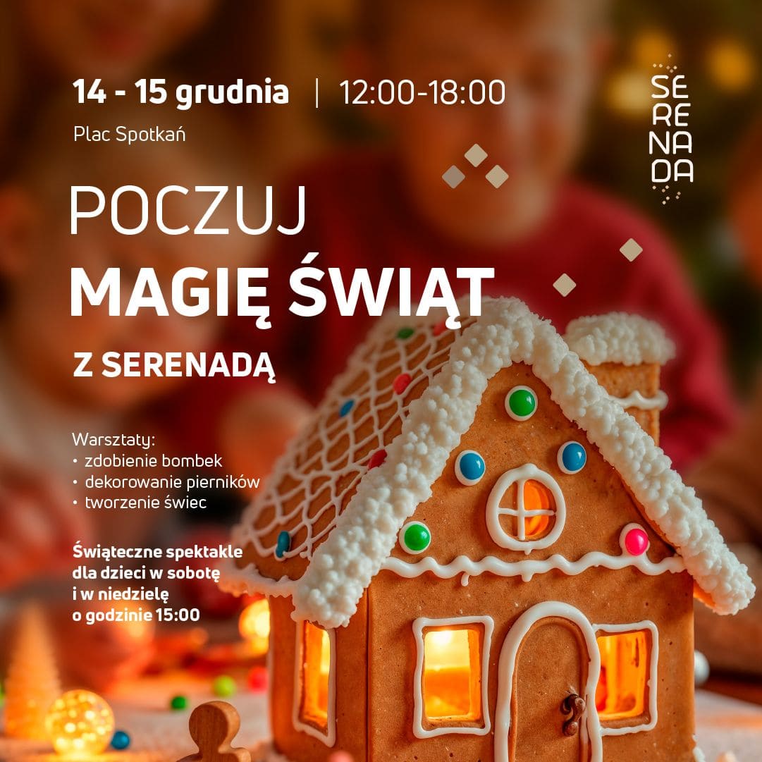 W dniach 14 i 15 grudnia zapraszamy na świąteczne atrakcje: zdobienie bombek, dekorowanie pierników, warsztaty robienia świec. Spektakle dla dzieci